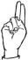 На ћирилици написано БЛАЖА ТОЧИЋ састоји се из 10 слова [?]. Исписано ћириличном једноручном азбуком за глувонеме: